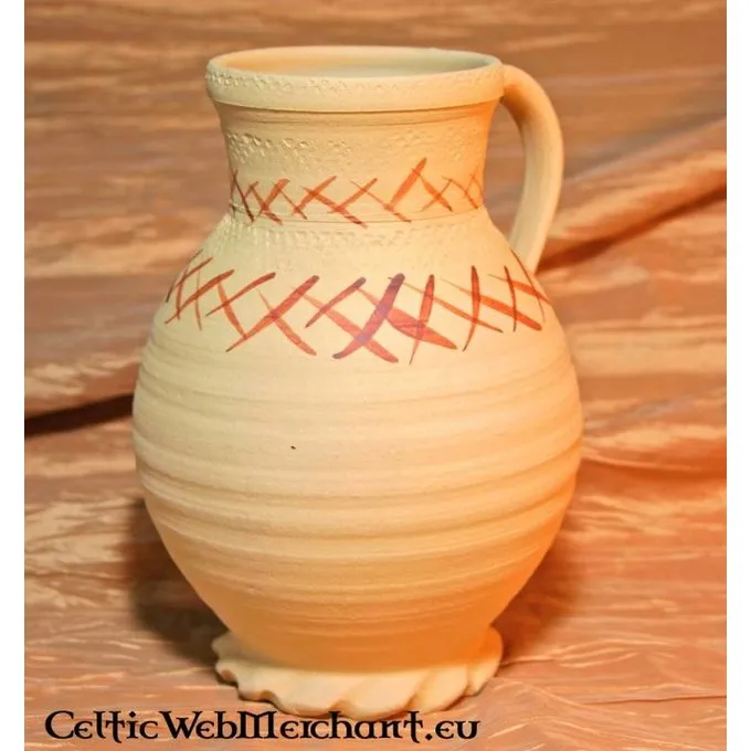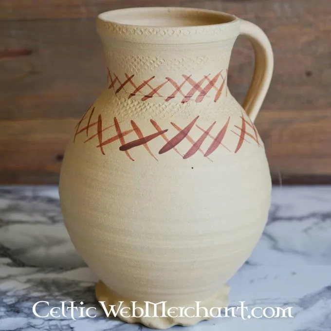 Es ist komplett in Handarbeit von der Ton aus dem Rheinland, die Niederlande, Deutschland und Italien um die Mittelalter gehandelt wurde. Der luxuriöse Gießen Krug ist einfach, aber stilvoll eingerichtet. Seine Länge beträgt 20 cm.
