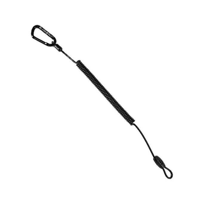Das Kabel ist mit einem geflochtenen Stahlkern aus Kunststoff. Es kann mit einer Schraubenkonstruktion und einem Karabiner befestigt werden. Seine Gesamtlänge beträgt 40 cm und kann bis zu 1,5 Meter verlängert werden.