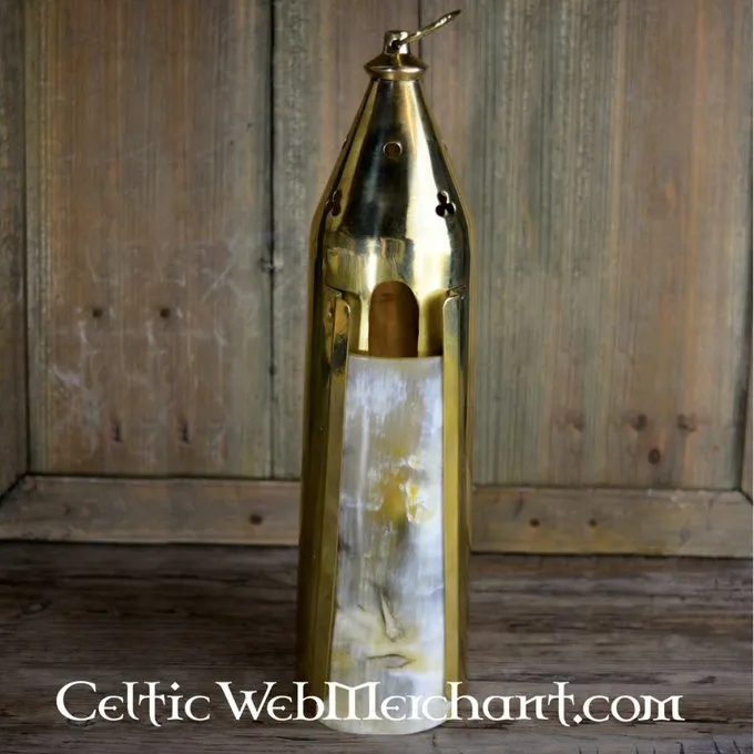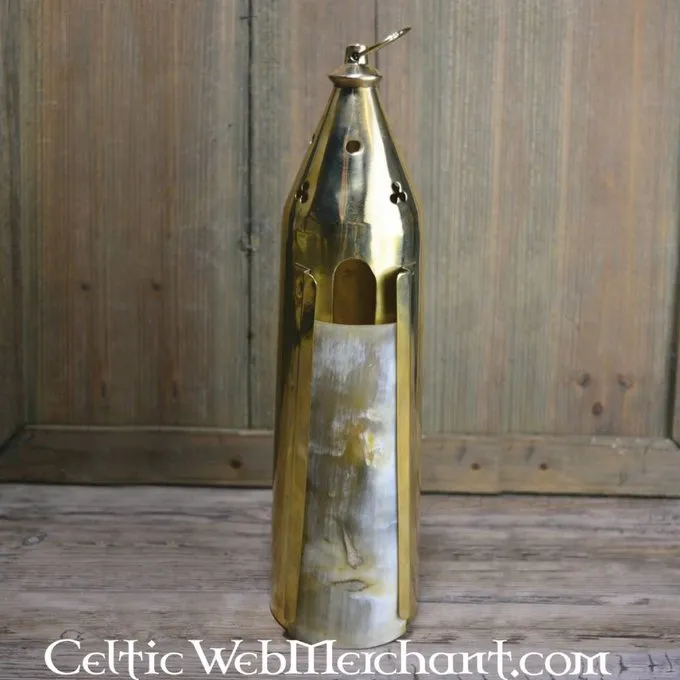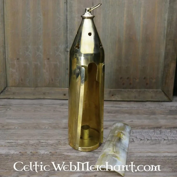 Diese gotische Laterne ist eine Nachbildung eines Originals in Medieval London ausgegraben. Laternen waren eine primäre Lichtquelle in dem mittelalterlichen Hause oder gegossenle. Sie Schilded offenes Feuer. Neben praktischen Gründen so eine schöne Laterne hatte auch eine dekorative Funktion im Haushalt. Diese Laterne ist mit gotischen trefoils eingerichtet und verfügt über ein Horn Tür.