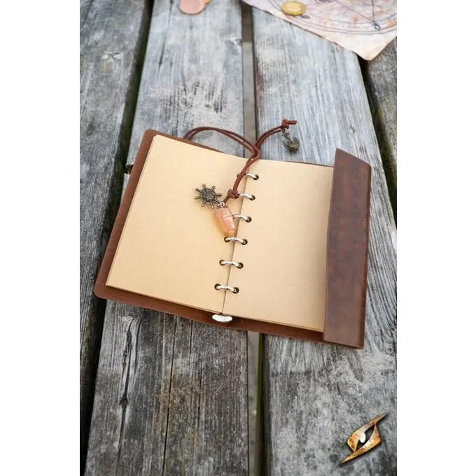 Dieses Pirate Style Journal eignet sich perfekt für Cosplay, Larp, andere Rollenspiele, als Geschenk oder nur für sich selbst. Das Buch ist ein Ringbindemittel mit 55 Blättern. Der Vorteil ist, dass das Buch nicht voll werden kann: Wenn die Seiten voll sind, nehmen Sie sie heraus und legen leere Seiten ein. So können Sie das Buch jedes Mal für ein anderes Rollenspiel oder ein anderes Thema wiederverwenden. Das Cover und die Spitze bestehen aus künstlichem Leder. Das Tagebuch ist mit 3 Anhängern verziert: ein Schiffsrad, ein Anker und ein Kristall. Sie können das Buch an Ihren eigenen Stil anpassen, indem Sie andere Kleiderbügel hinzufügen oder das Cover selbst malen.