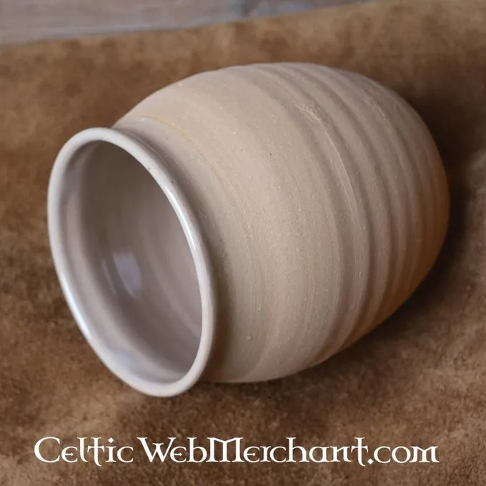 Diese handgemachte Kopie wird auf archäologischen Funden basiert. Es ist aus ochery Ton und hat ein 0,5L Volumen. Für während eines Reenactment Ereignisses in der Art Bier und Met trinken