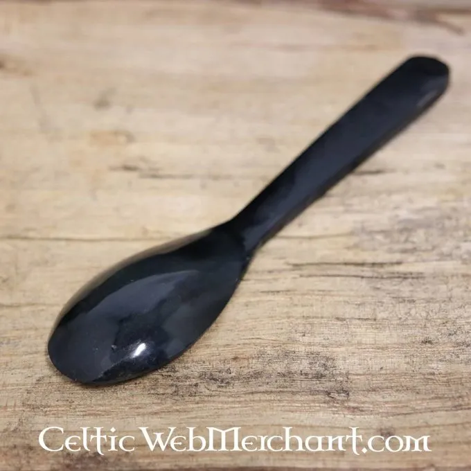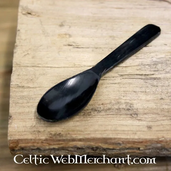 Dieser Löffel ist aus Horn und seine Länge beträgt ca. 18 cm.