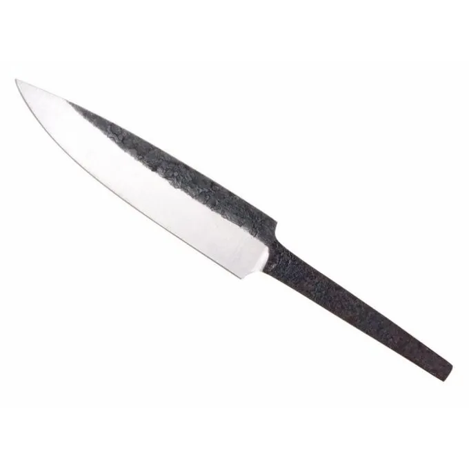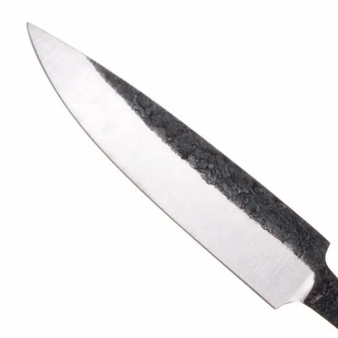 Diese Messerklinge ist eine Nachbildung eines 9. bis 10. Jahrhundert original in Haithabu gefunden. Diese Art von Messer wurde vor allem von den Angelsachsen um diese Zeit produziert, sondern weltweit gehandelt. Diese handgemachte Messerklinge von 1085 Kohlenstoffstahl hergestellt und auf eine Härte von 54 temperierte – 56 HRC.