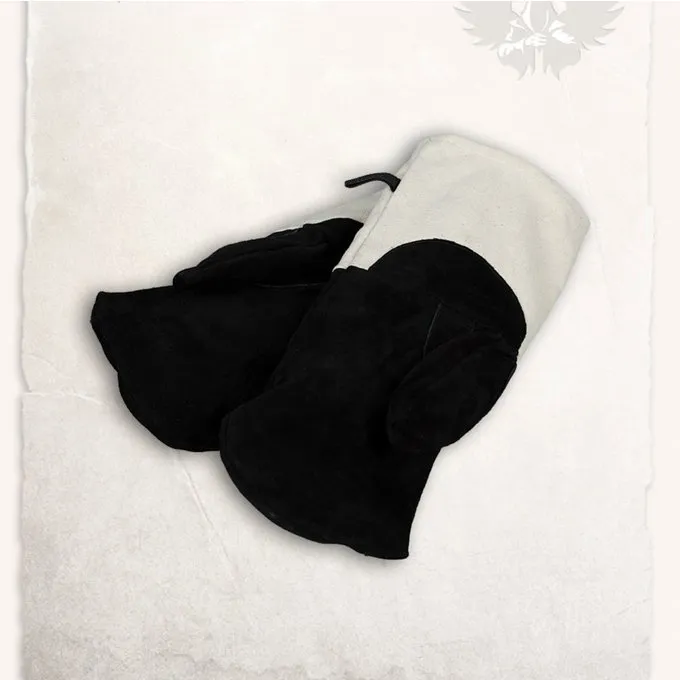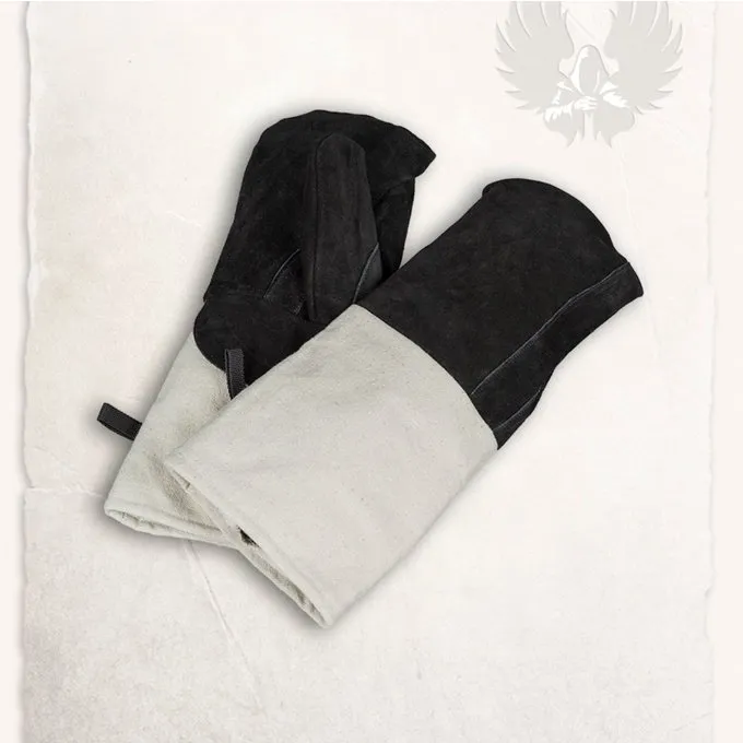 Kochen auf offenem Feuer ist ein großes Hobby, aber nicht ohne Risiken. Wenn Sie nicht Ihre Hände schützen könnten Sie aus dem heißen Stahl verbrennen oder das Feuer selbst. Diese Handschuhe von Mytholon sind eine gute Lösung! Die meisten Küchenhandschuhe und Ofen Fäustlinge sind in einem modernen Stil und sind für Ihre LARP oder Reenactment Charakter nicht geeignet. Mit diesen mittelalterlichen Küche Handschuhe können Sie in der Art während LARP und Reenactment Veranstaltungen kochen. Sie sind mit einer Baumwoll-Manschette aus Wildleder. Der Wildleder Teil schützt die Hand vor Flammen und Hitze. Die robuste Baumwolle schützt die Unterarme gegen Dampf und heiße Funken. Die idealen Handschuhe für die mittelalterliche Küche, über offenes Feuer im Garten Kochen und bei Veranstaltungen.