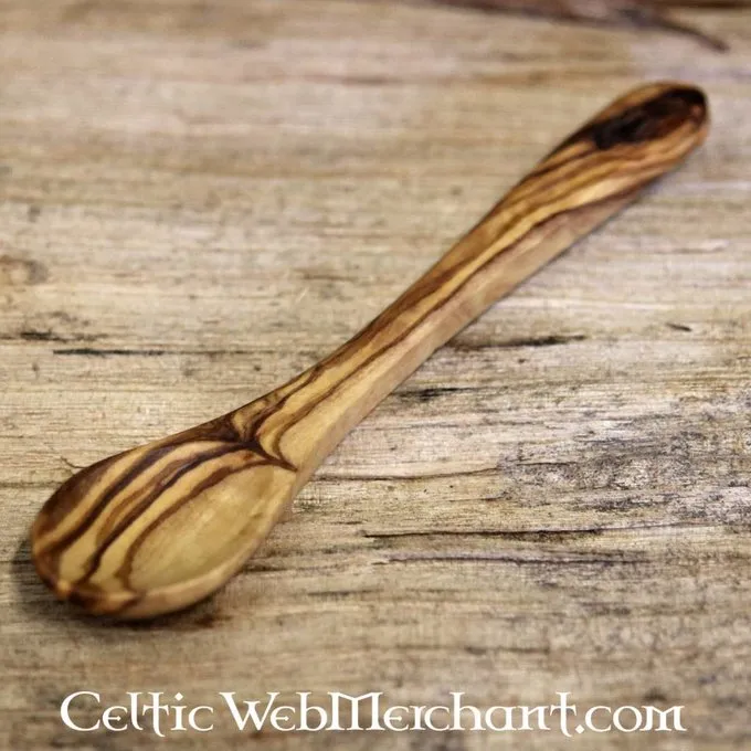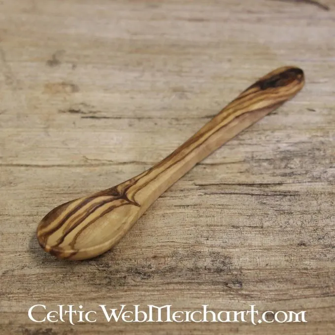 Dieser Löffel aus Olivenholz und seine Länge beträgt 12 cm.