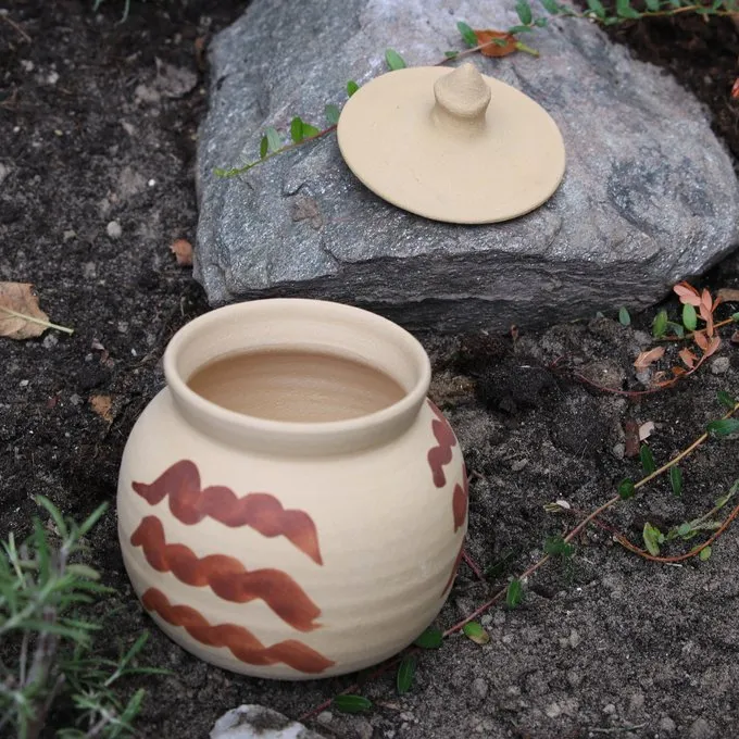 Material: Ton / Handgefertigte und handwerklichen / Volumen: ca. 0,4 l / Länge: ca. 12 cm / Breite: ca. 10 cm / Auf einem historischen Original basiert