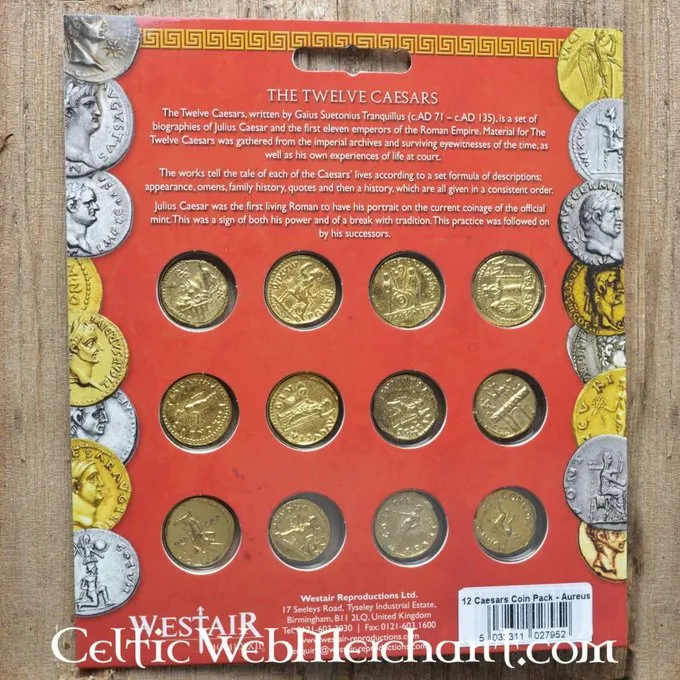 Dieses Set enthält 12 verschiedene Münzen der römischen Kaiser. Die Münzen werden von Jahr / Regierungsjahr sortiert. Die vordere und die Rückwärts zeigen, wie der Kaiser stellte sich: als Priester, Eroberer, Sieger, Philosoph usw. Der Kaiser oft dargestellt wird ein Lorbeer trägt