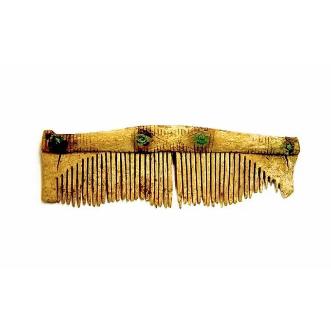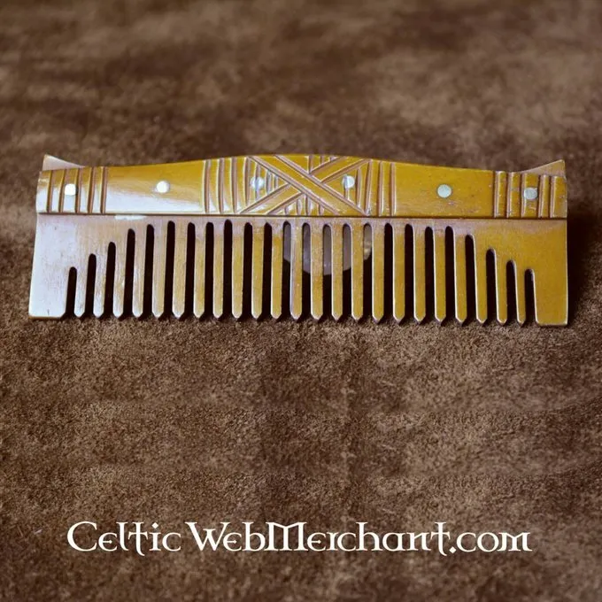 Dieser handgemachte Replik ist aus natürlichen Knochen. Er misst 12 x 4 x 1 cm und ist mit Bronze Nägel gebaut. Diese Technik der Kamm Herstellung wurde bereits von den germanischen Stämmen eingesetzt.