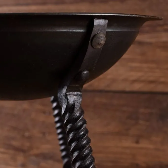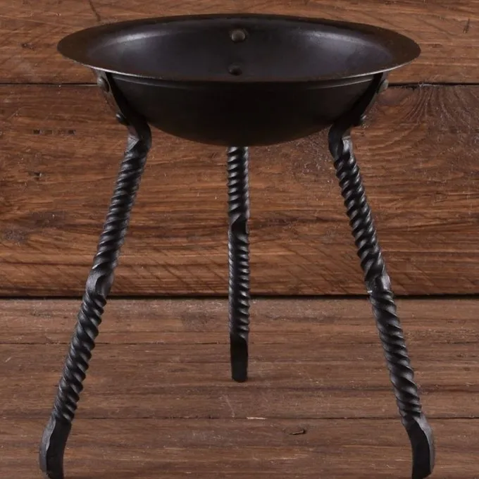 Diese handgeschmiedeten multifunktionale Feuerschale mit verdrehten Beinen können für verschiedene Zwecke verwendet werden. Sie können im Lager in ihm ein kleines Feuer zu machen oder im Garten, können Sie es als eine Lampe mit Lampenöl verwenden, oder als Duftbrenner, als Aroma Schüssel in der Sauna, Essen oder zu speichern Dinge vorzubereiten.
