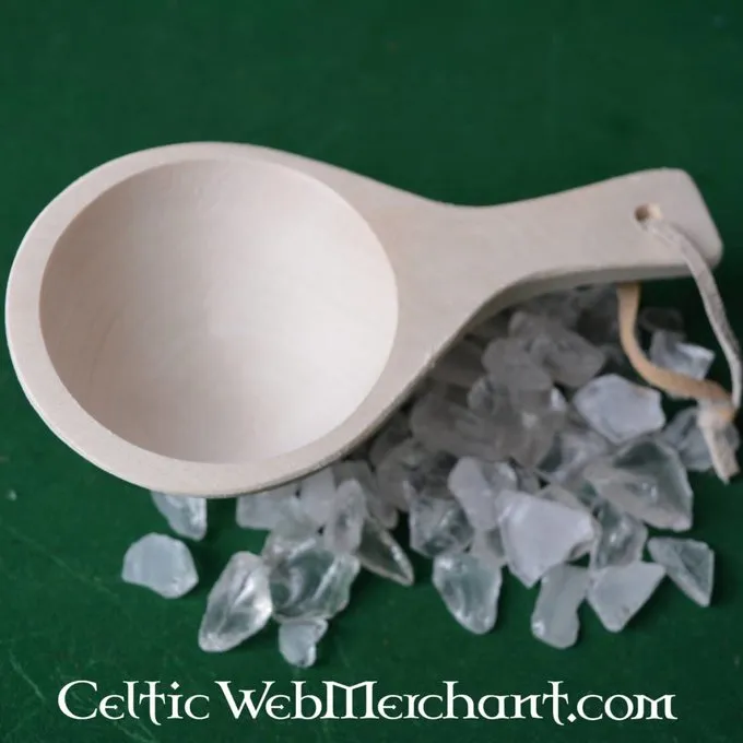 Dieser Holzlöffel misst 17 cm. Es ist perfekt geeignet für die Suppe und andere alkoholische Getränke serviert und es kann leicht an einem Gürtel befestigt werden. Der Löffel hat einen Durchmesser von ca.. 8 cm.